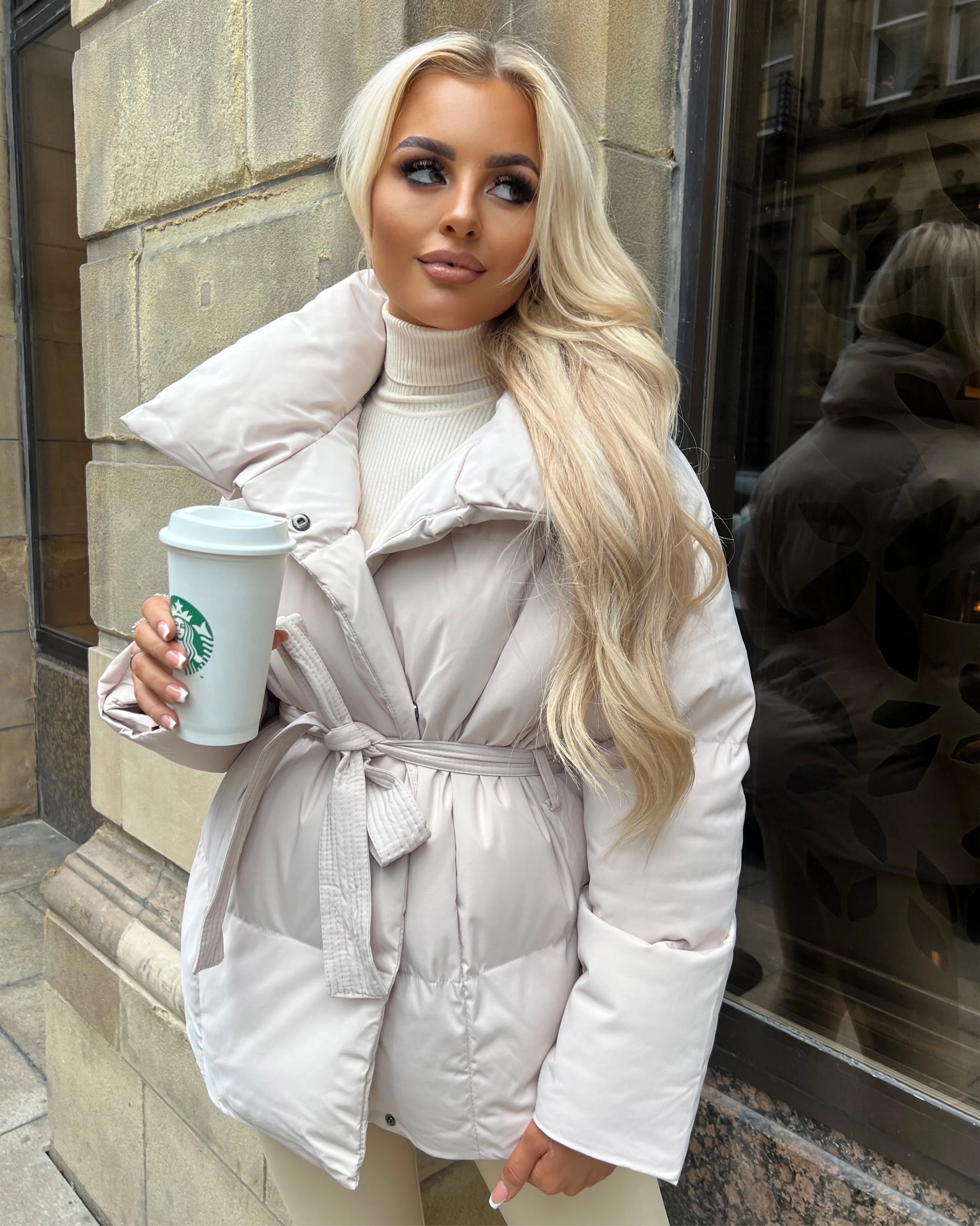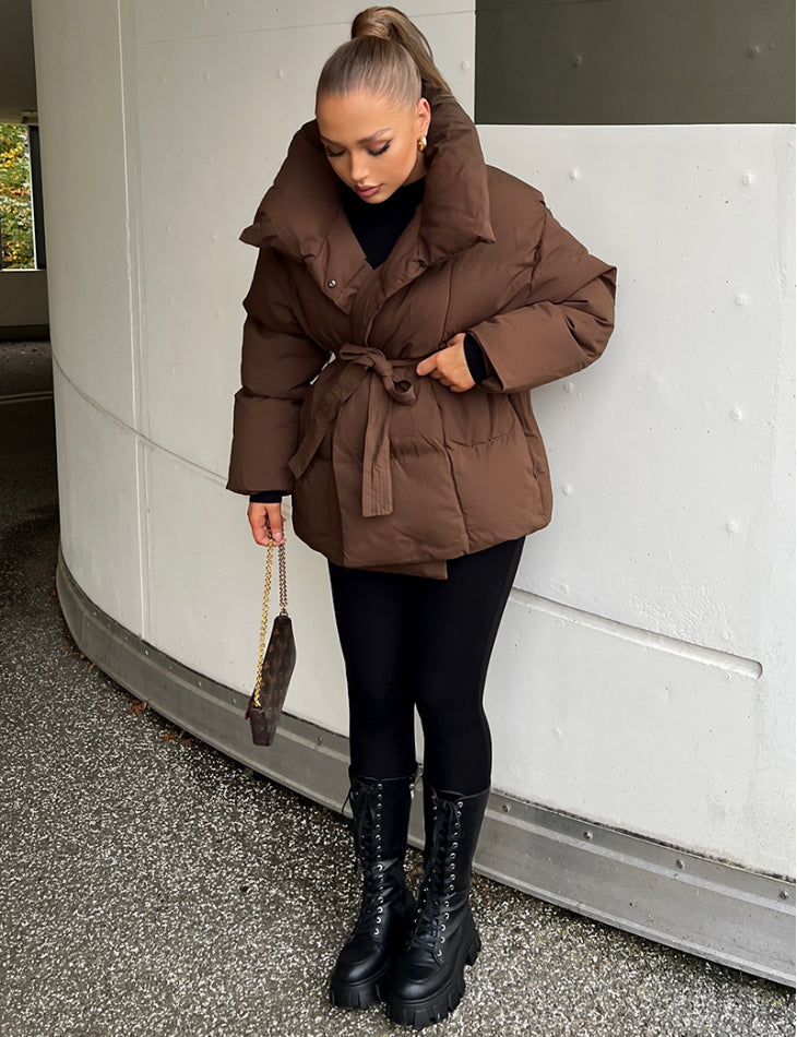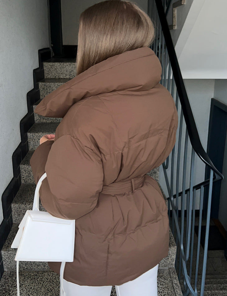 Ce qui distingue la doudoune ASTRA™, c'est sa ceinture assortie amovible. Elle vous permet de marquer la taille et de transformer la coupe oversize en une silhouette ultra-féminine. Son col montant surdimensionné enveloppe votre cou, agissant comme une écharpe intégrée. Les finitions de haute qualité et le tissu résistant en font votre vêtement d'extérieur favori. (Disponible en couleurs neutres et chics : Noir, Marron Chocolat, et Crème.)